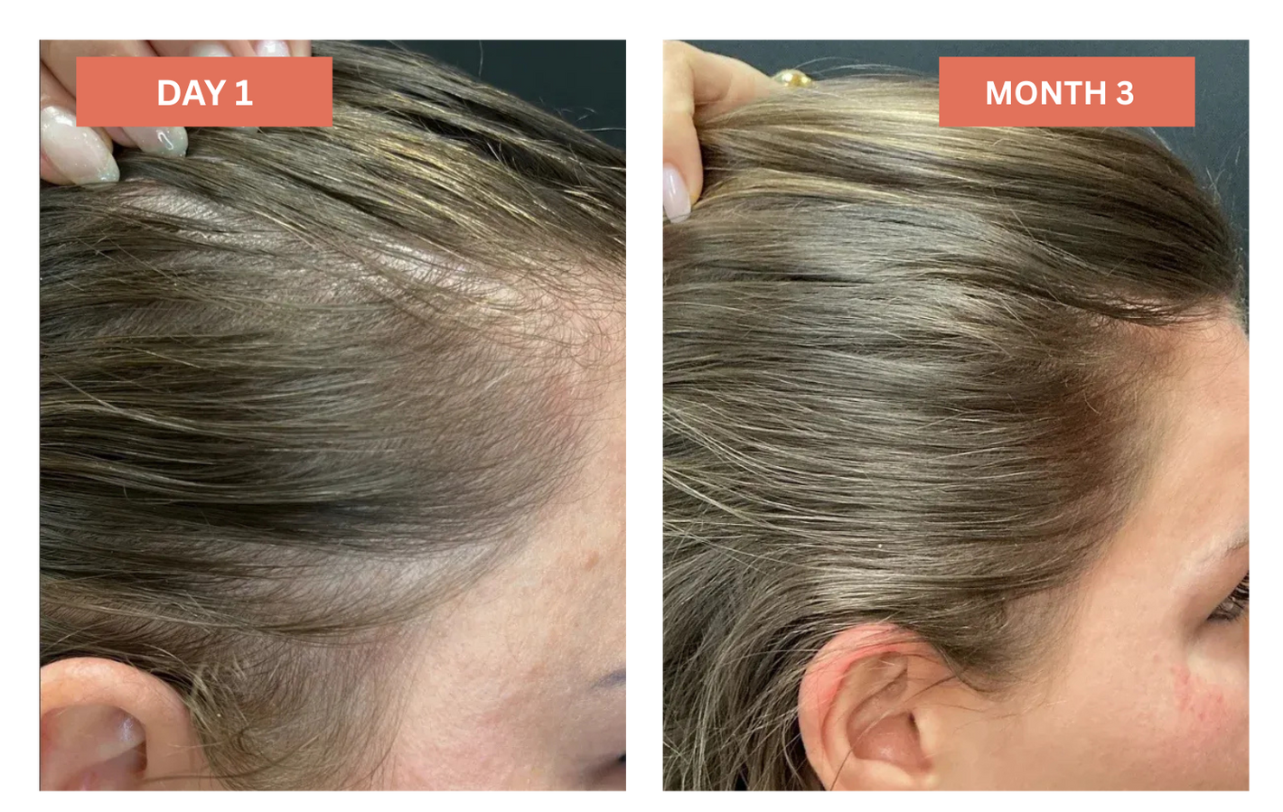 See tiny new hairs sprouting along your hairline and part. These "baby hairs" signal your follicles are responding to the increased nutrients and reduced DHT levels.